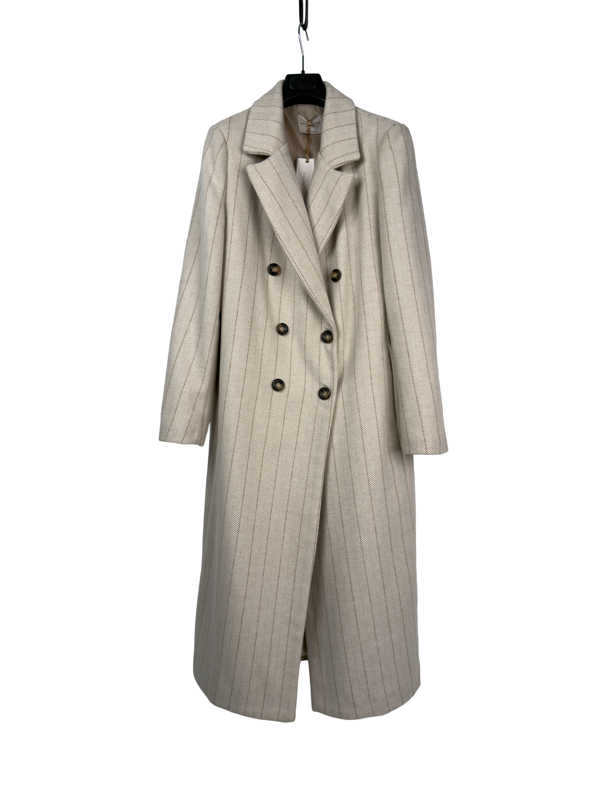 Luxusní dvouřadý vlněný kabát s jemnými proužky