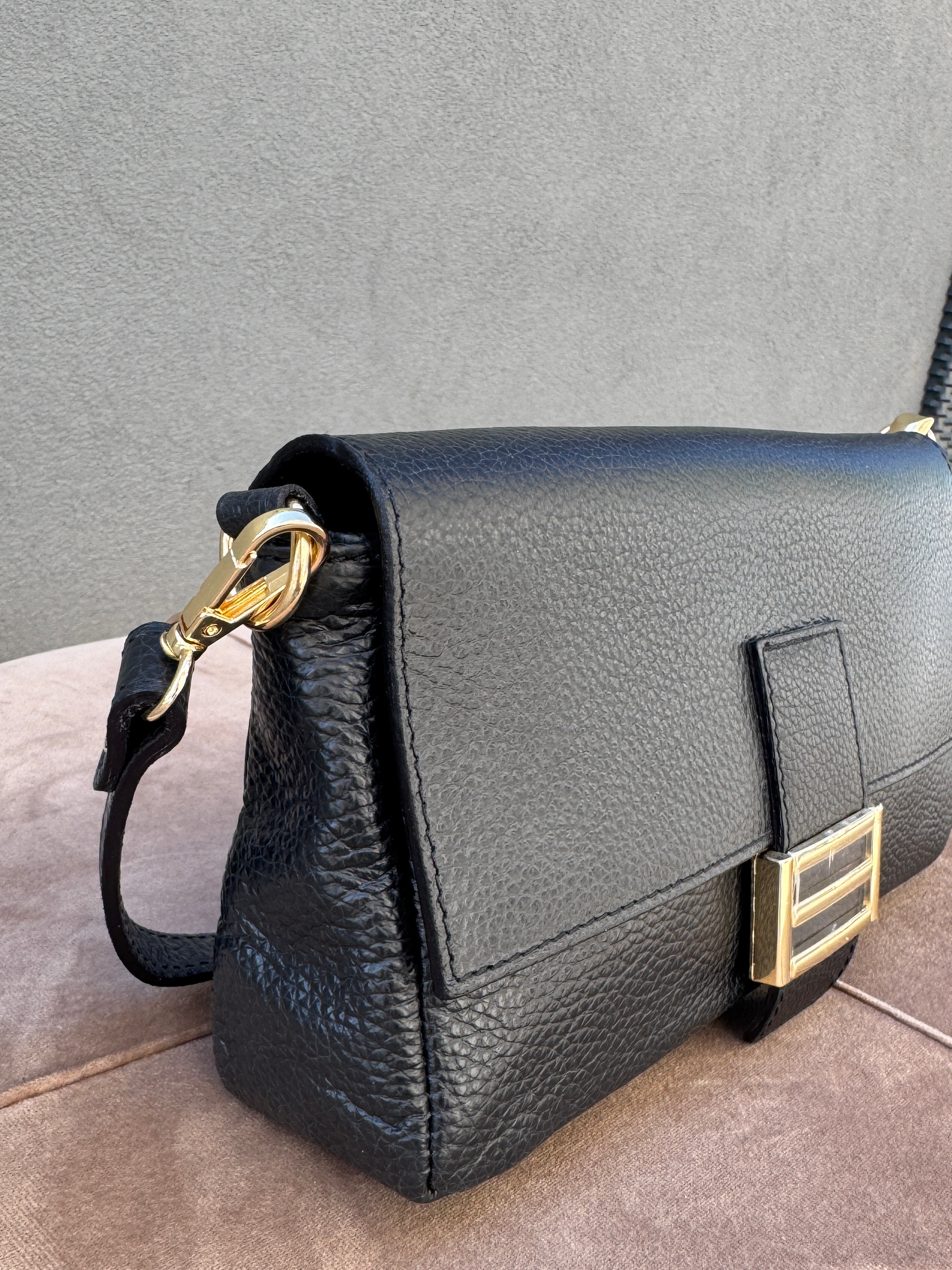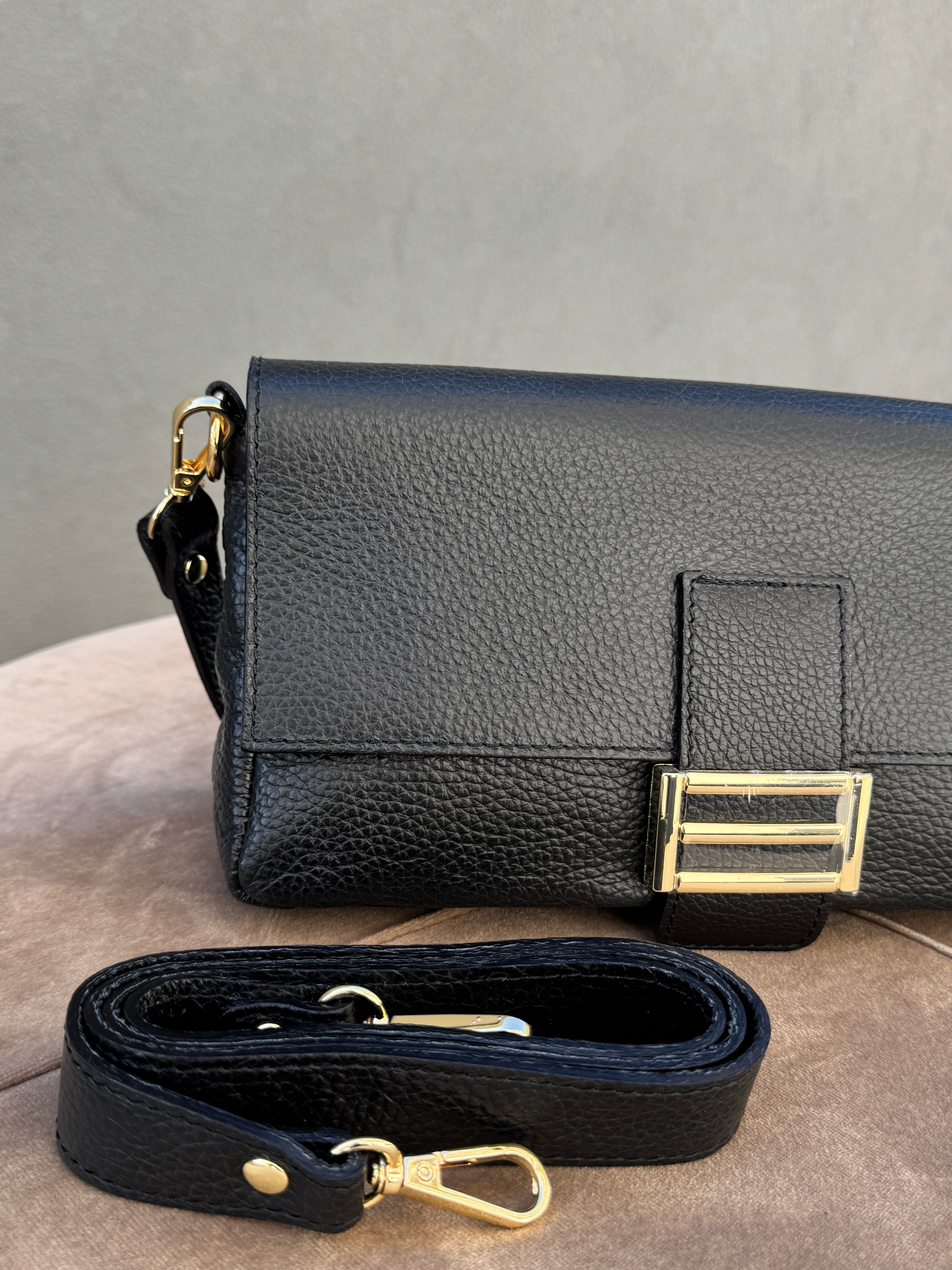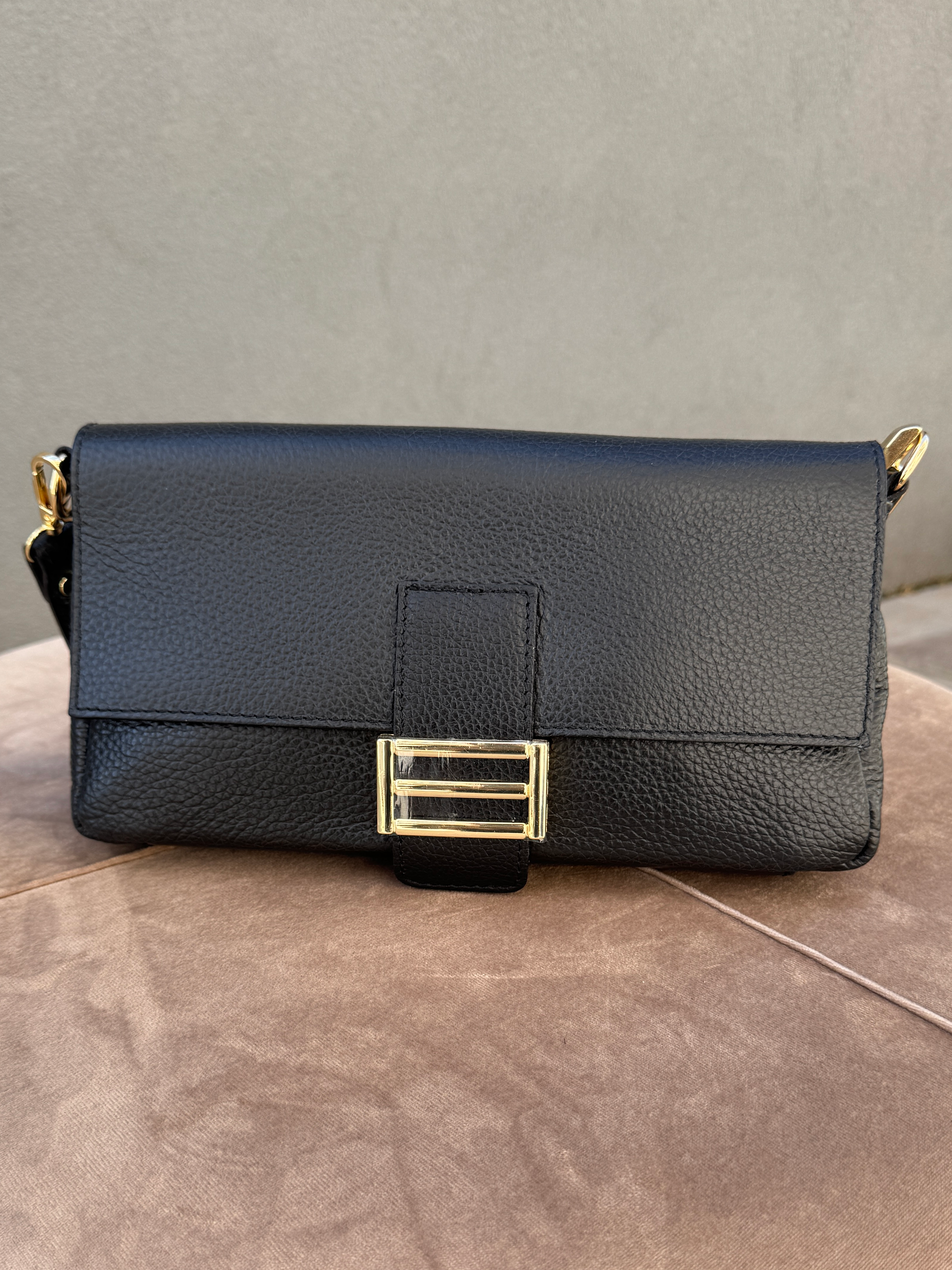 Stylová kožená kabelka se zlatou sponou
