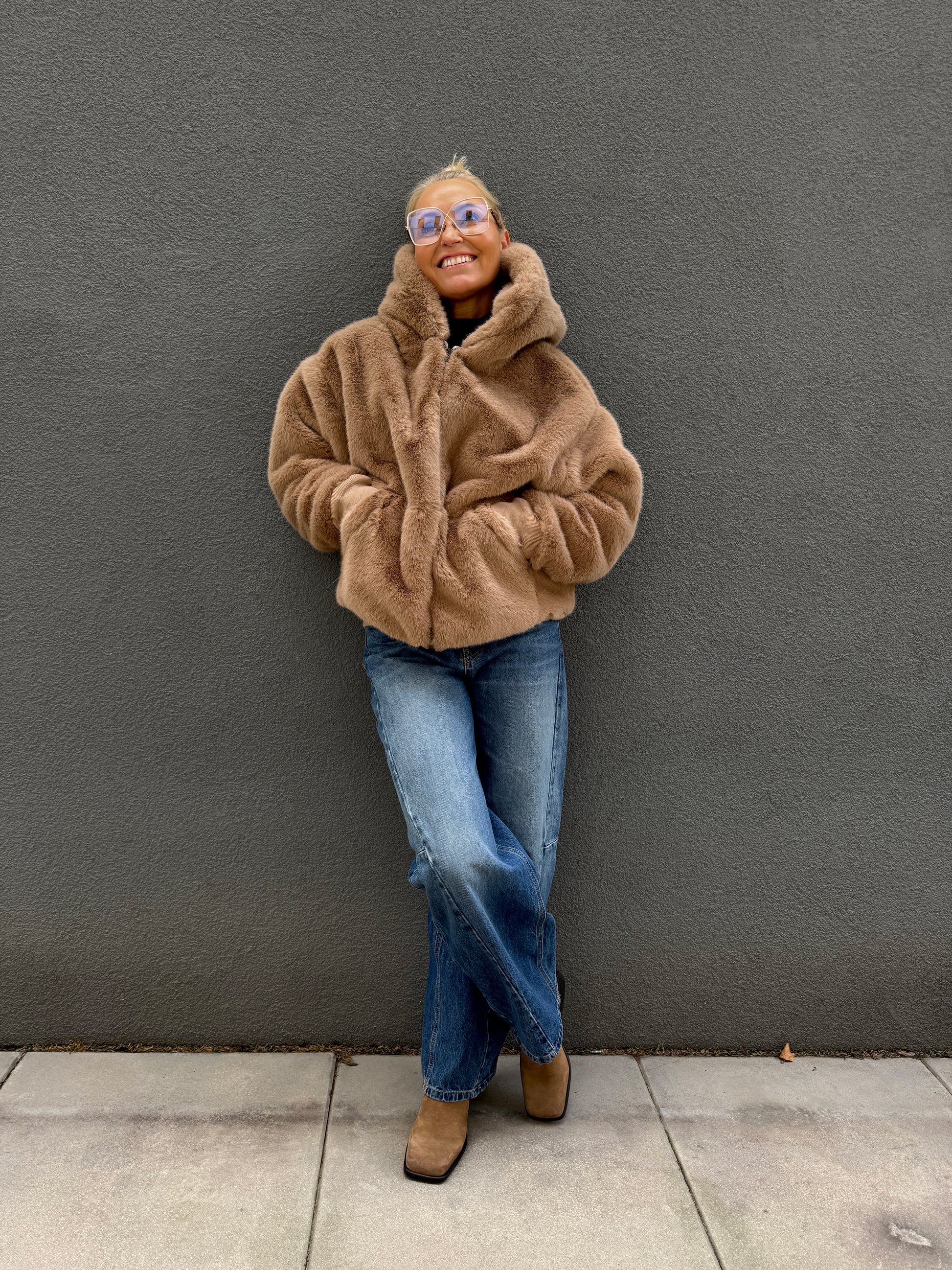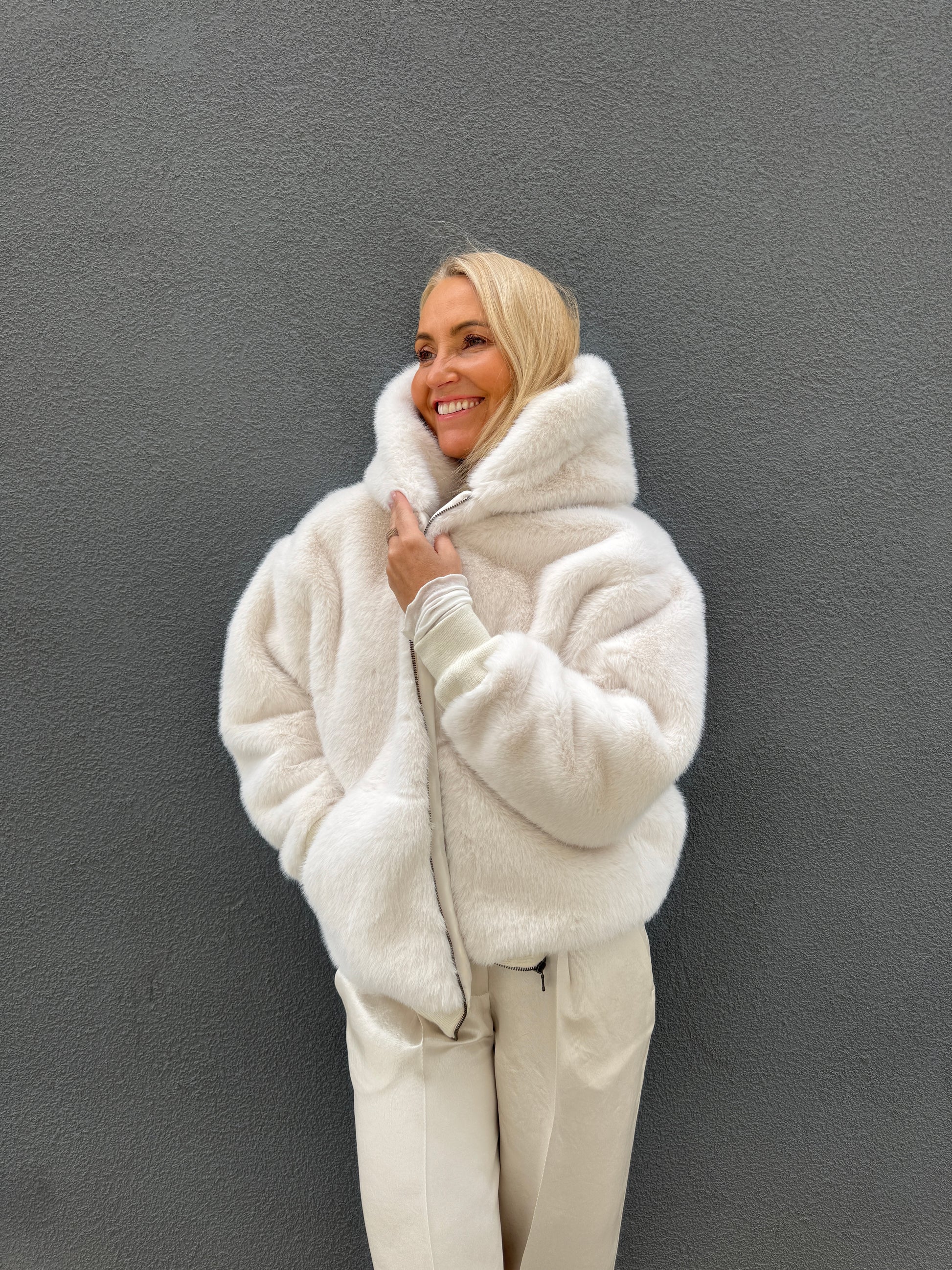 Hřejivý kožíšek s kapucí na zip