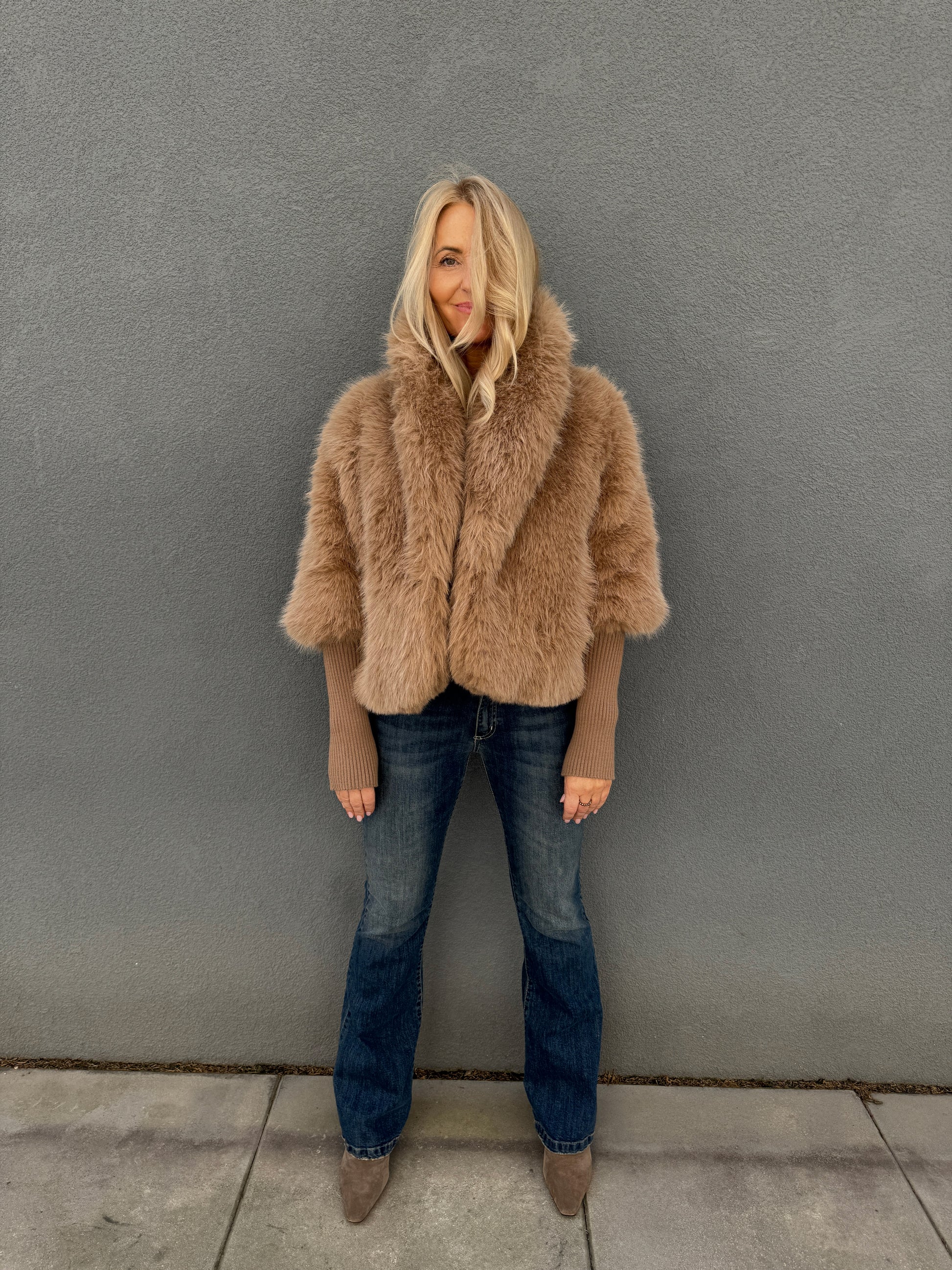 Luxusní elegantní kožíšek s velkým límcem
