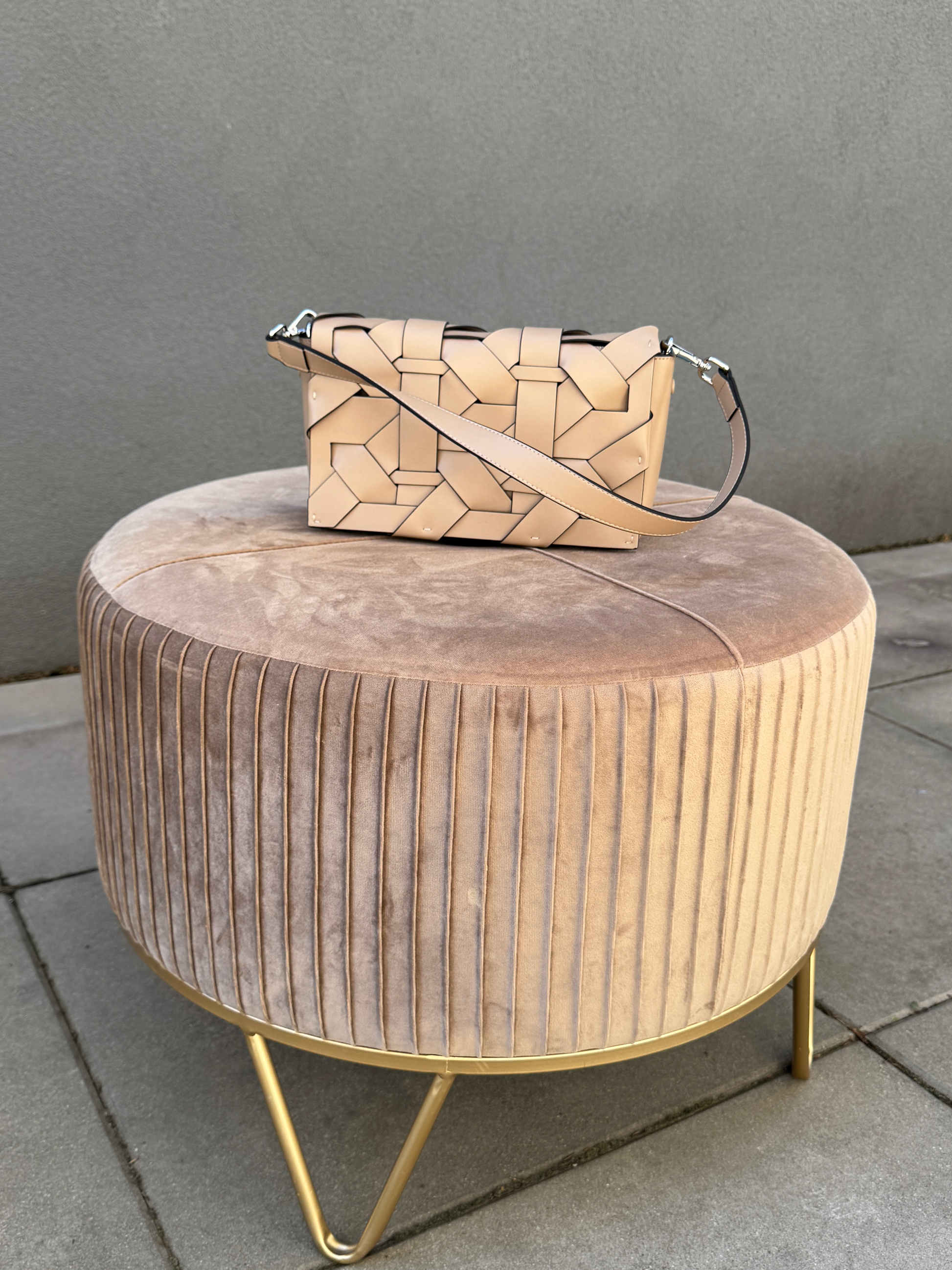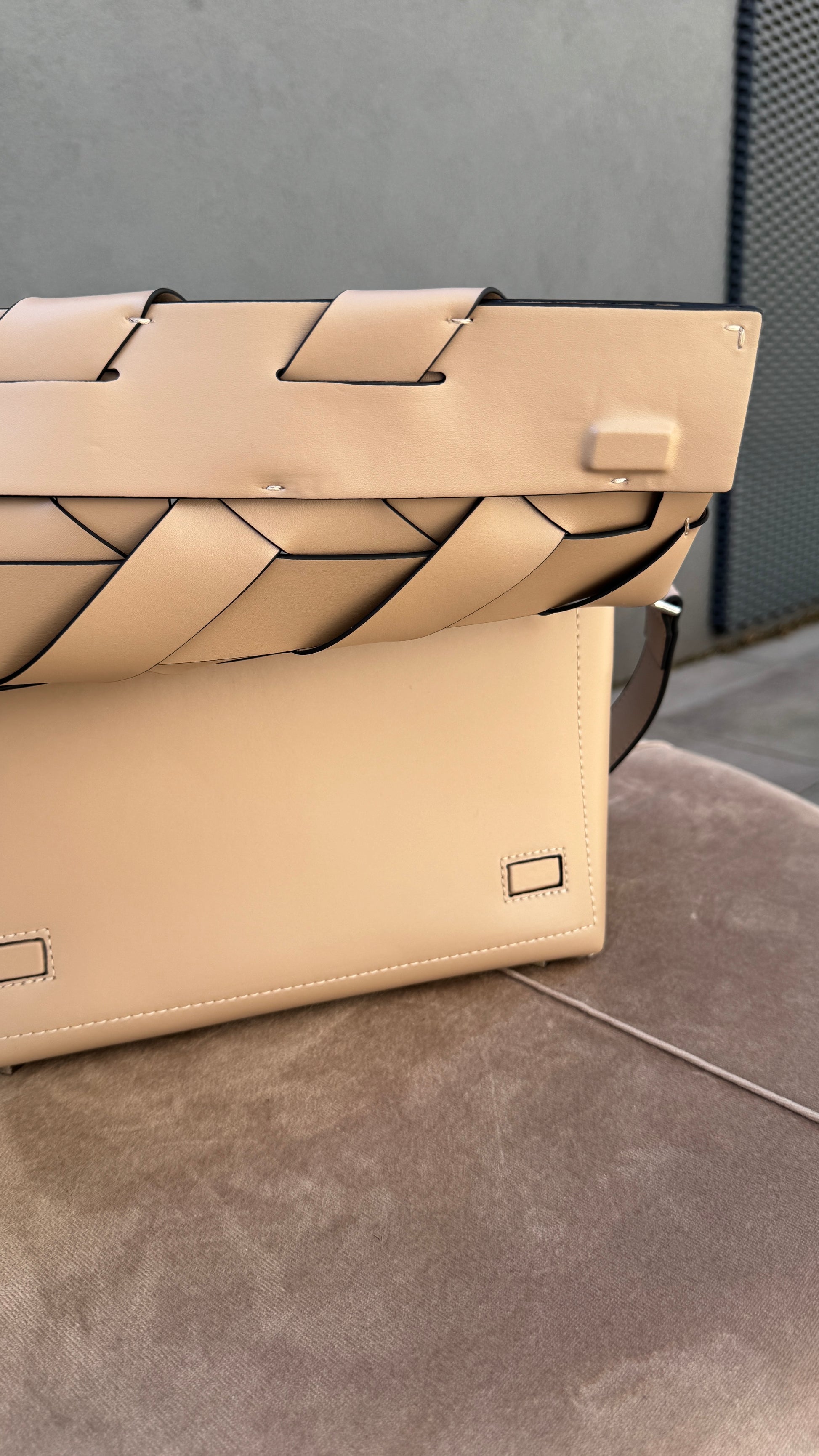 Stylová kožená kabelka s pletením