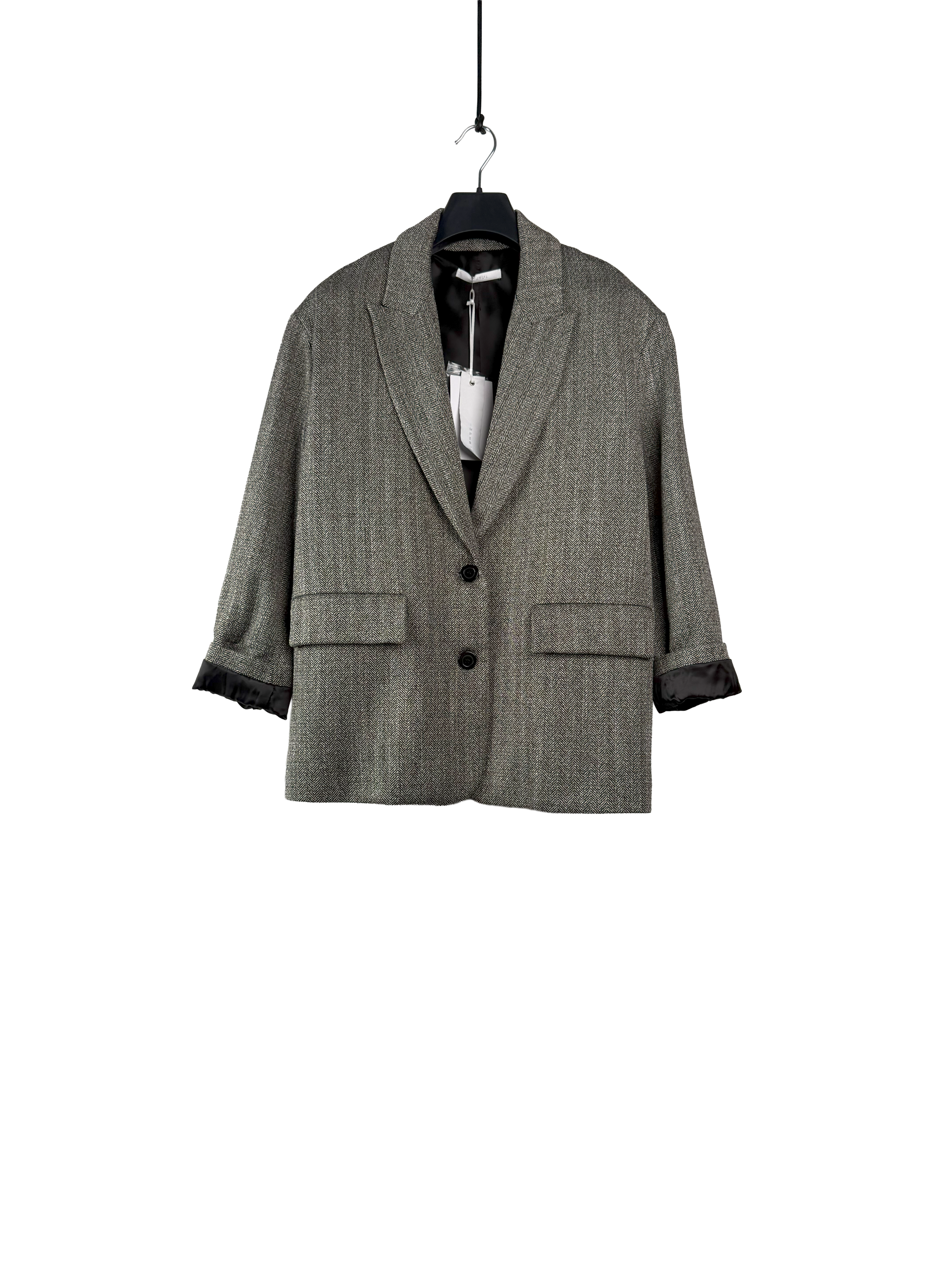 Elegantní sako se strukturou, které působí profesionálně a nadčasově.